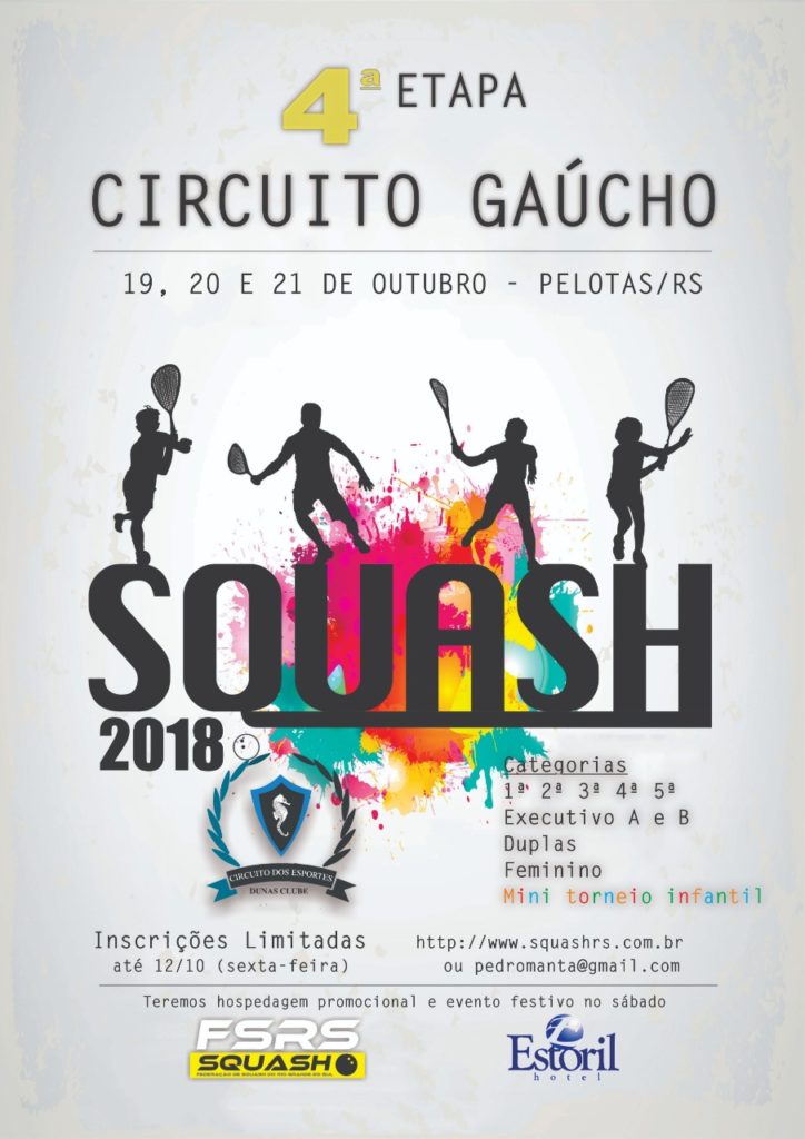 Data: 19 a 21 de Outubro de 2018 Pelotas – RS Quarta Etapa do Circuito Gaúcho de Squash 2018 Responsável