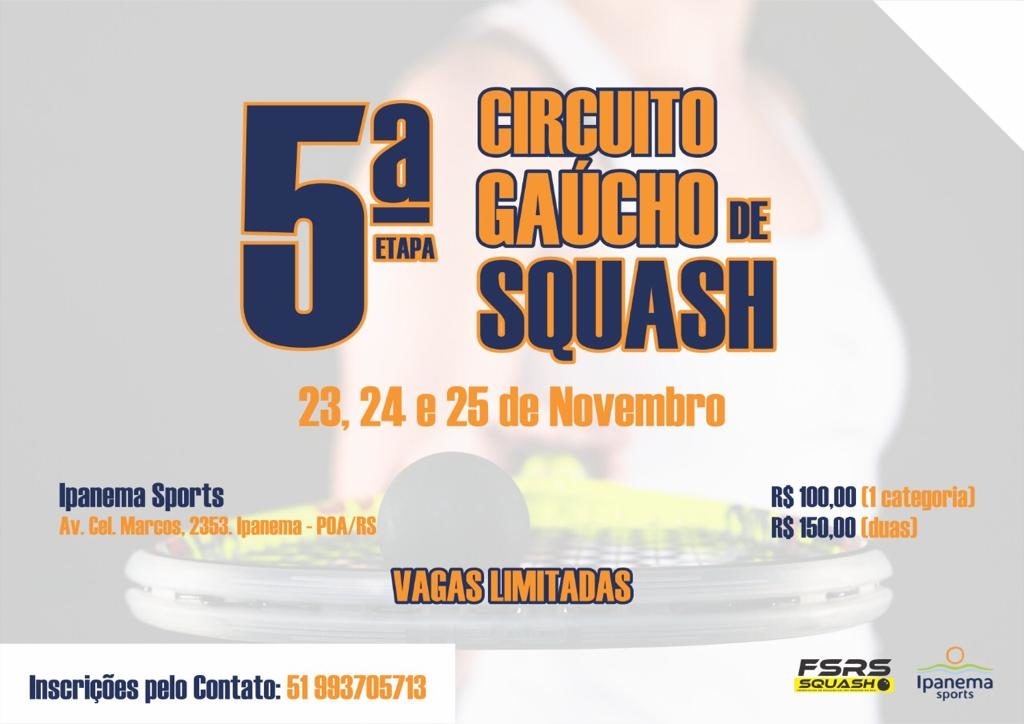 Atenção! A FSRS comunica que a Segunda Etapa do Circuito Gaúcho de Squash está cancelada. Em função de obras acontecendo