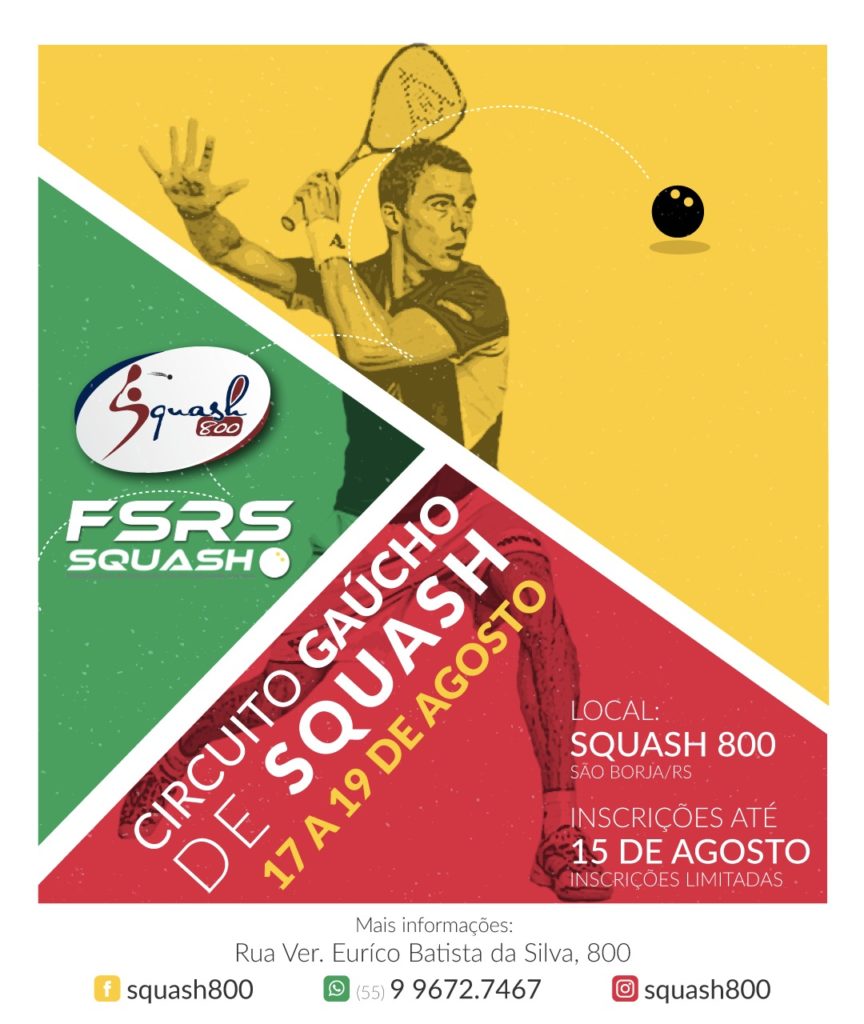Data: 23 a 25 de Agosto de 2019 Squash 800São Borja – RS Terceira Etapa do Circuito Gaúcho 2019 Responsável